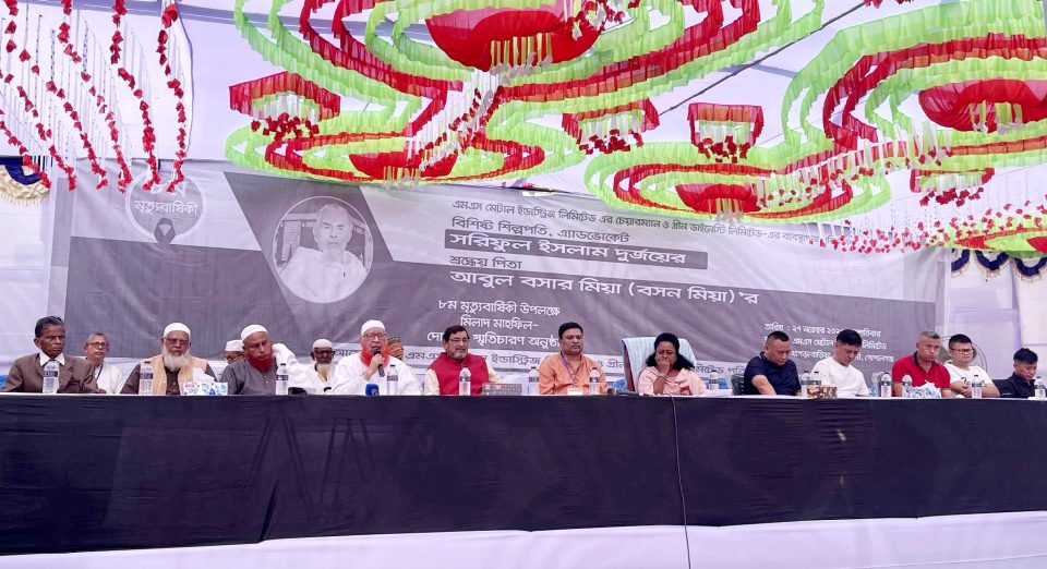 প্রতিনিধি কাশিয়ানী:- গোপালগঞ্জের কাশিয়ানী উপজেলার খাগড়াবাড়িয়া গ্রামে এম,এস মেটাল ইন্ডাস্ট্রিজ লিমিটেড কারখানা প্রাঙ্গণে কোম্পানিটির চেয়ারম্যান ও গ্রীন ডাইনেস্টি লিমিটেডের ব্যবস্থাপনা পরিচালক অ্যাডভোকেট সরিফুল ইসলাম দুর্জয়ের পিতা মরহুম আবুল বসার-বসন মিয়ার অষ্টম মৃত্যুবার্ষিকী উপলক্ষে আজ মিলাদ মাহফিল, দোয়া ও স্মৃতিচারণ সভা অনুষ্ঠিত হয়েছে।
