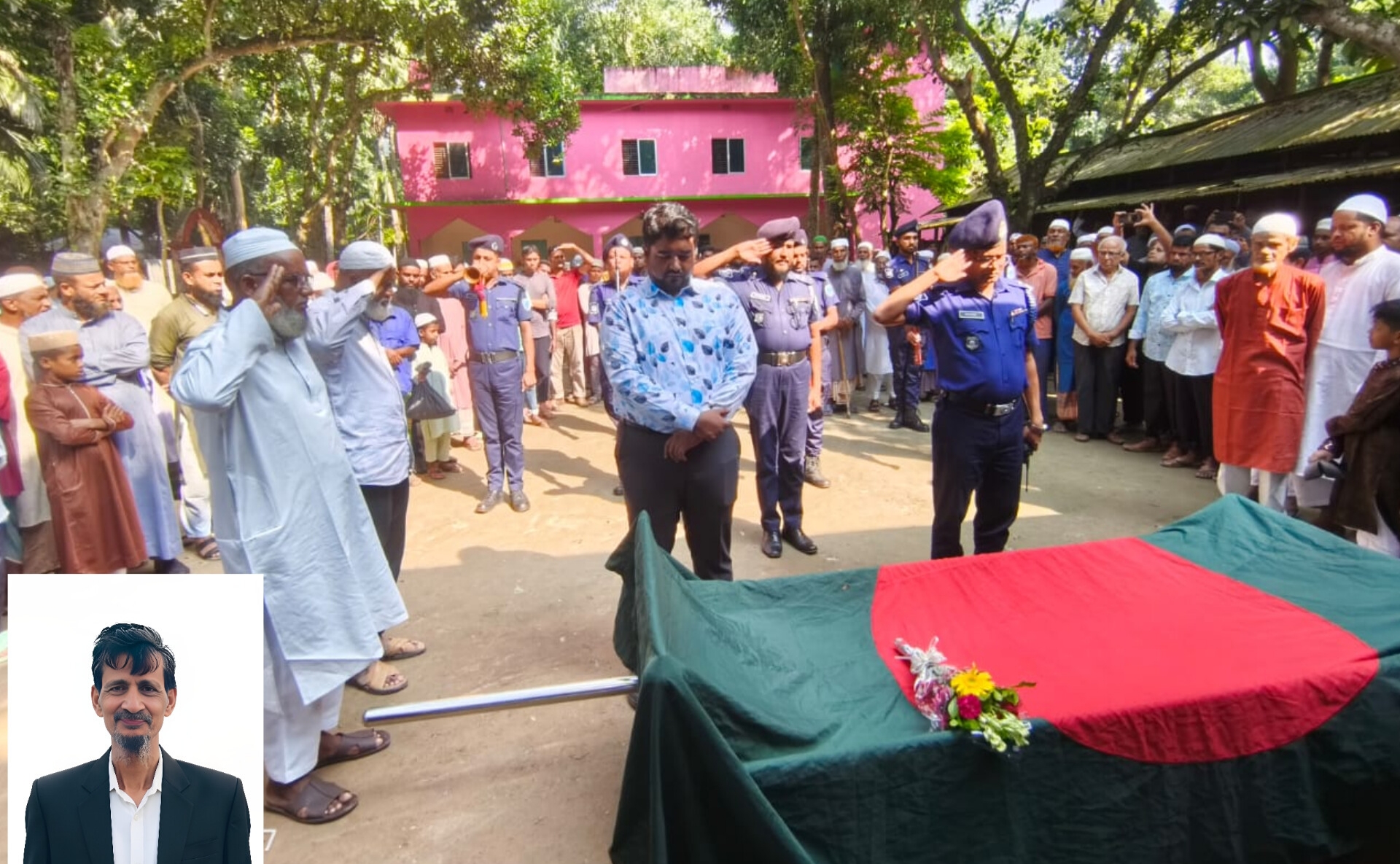 বৃহস্পতিবার (১৬ অক্টোবর) দুপুরে উপজেলার রাতইল মাদ্রাসা প্রাঙ্গণে তাঁকে গার্ড আব অনার দেওয়া হয়।